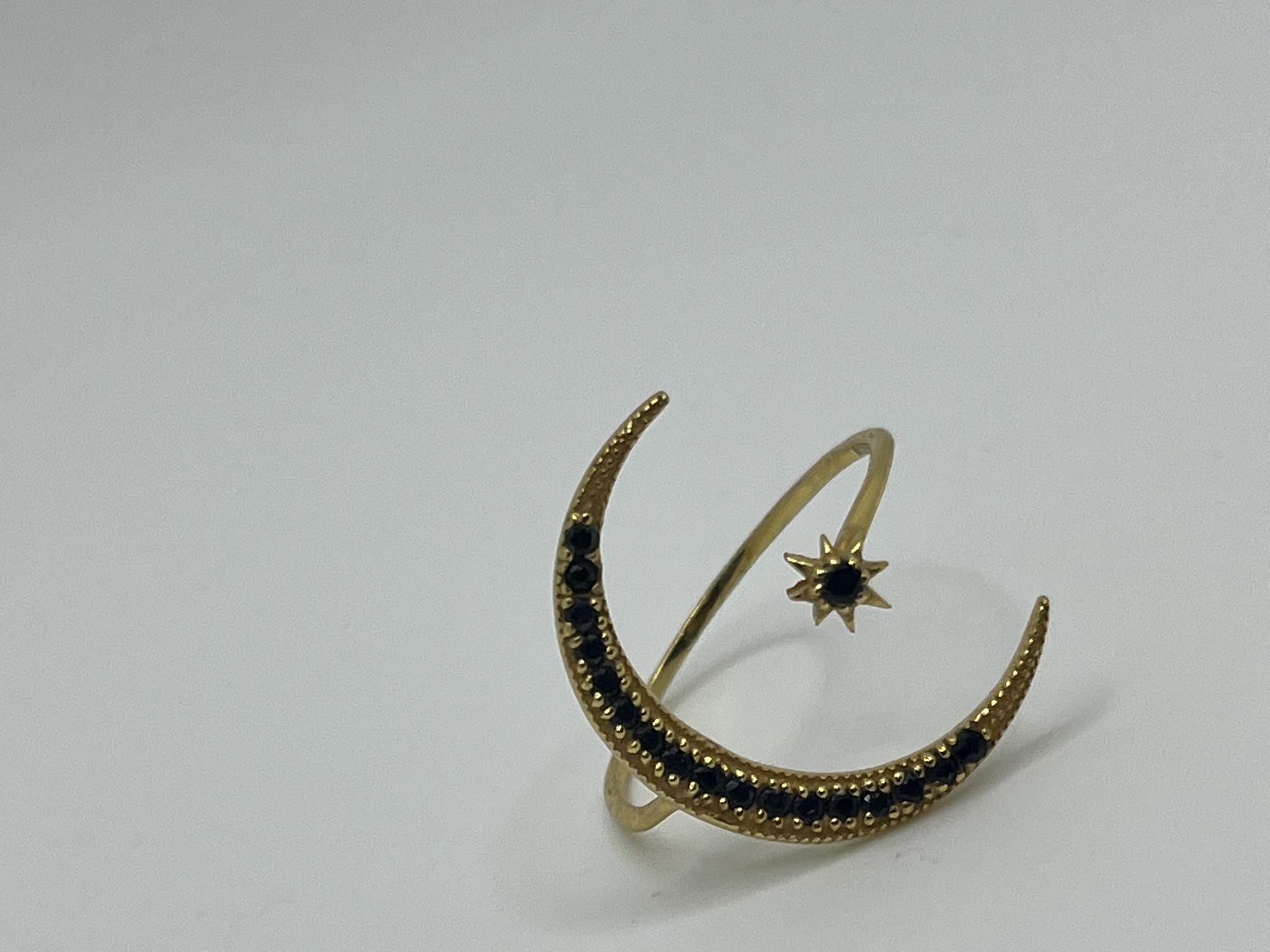 Con una luna y una estrella pequeña en el frente, este anillo es ideal para aportar un toque de luz y brillo con un estilo único y divertido.