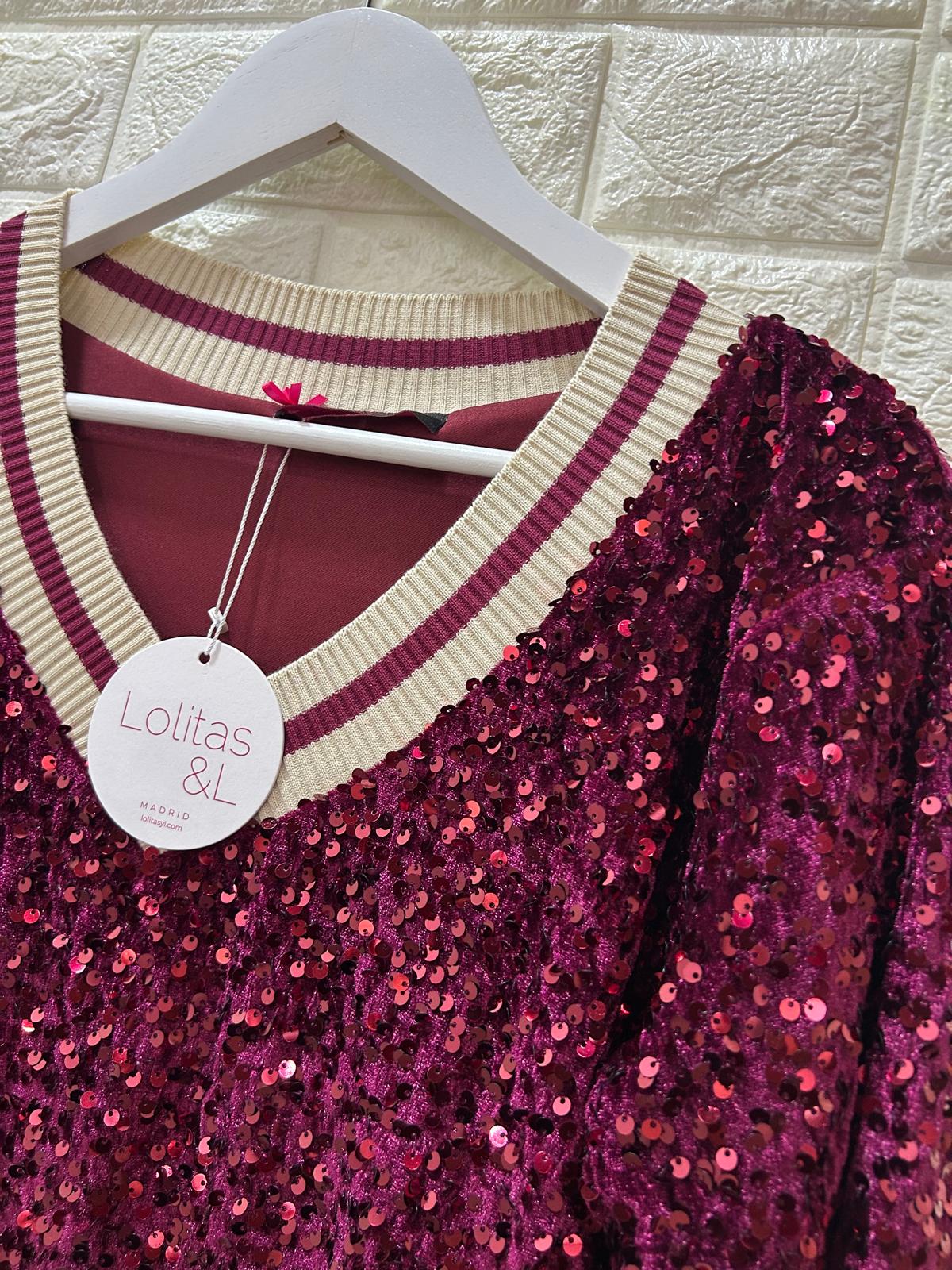 Camiseta granate lentejuelas con elasticos Lolitas&L