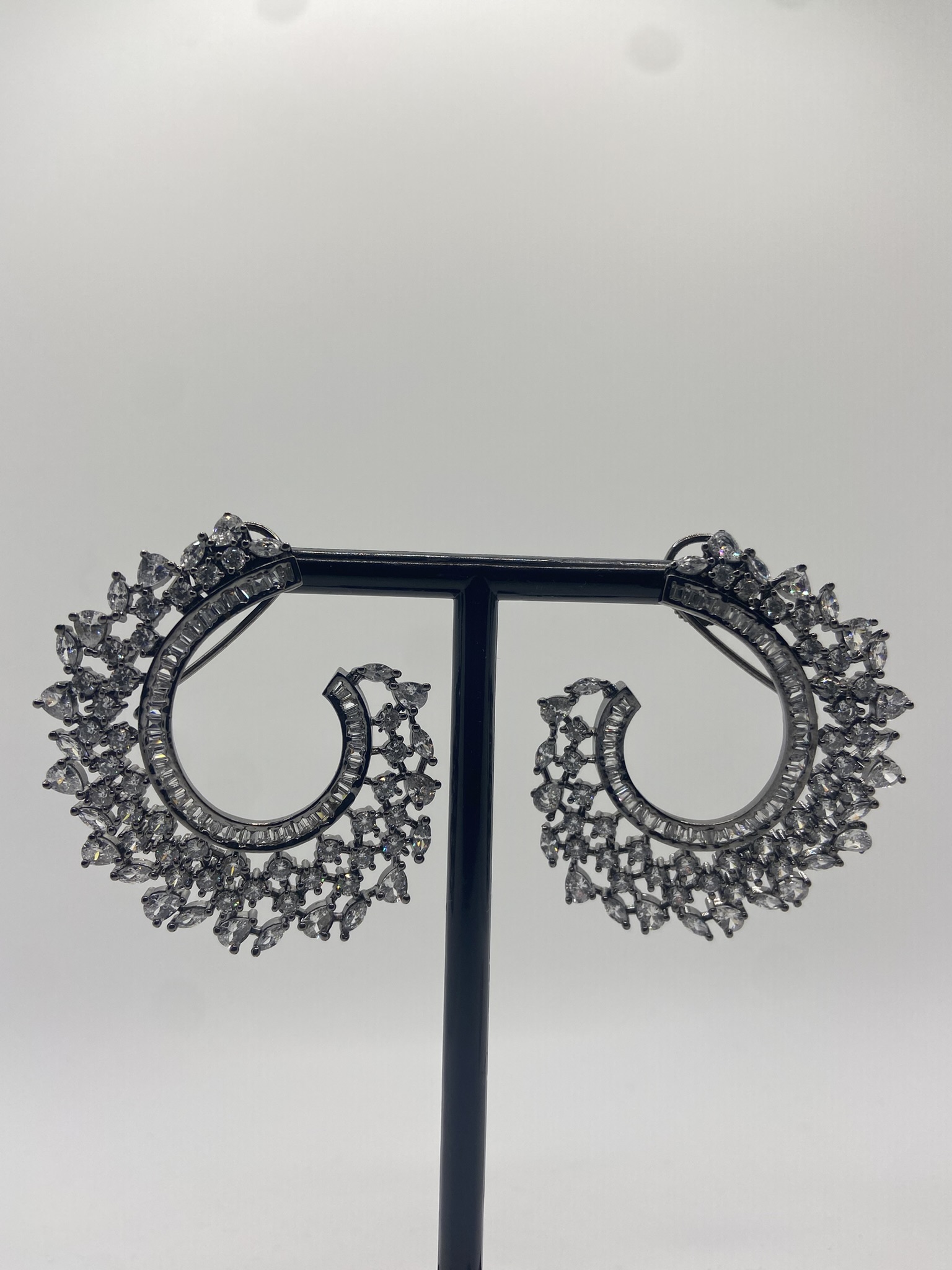 Pendientes elegantes en forma de curva ancha que evocan el inicio de una espiral, un diseño fluido y dinámico que irradia movimiento y sofisticación.
