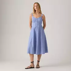 Nuestro vestido Ravina Midi queda igual de bien con un look formal como informal. Lo hemos diseñado con tirantes que favorecen al sujetador, un frontal con botones y una silueta evasé.